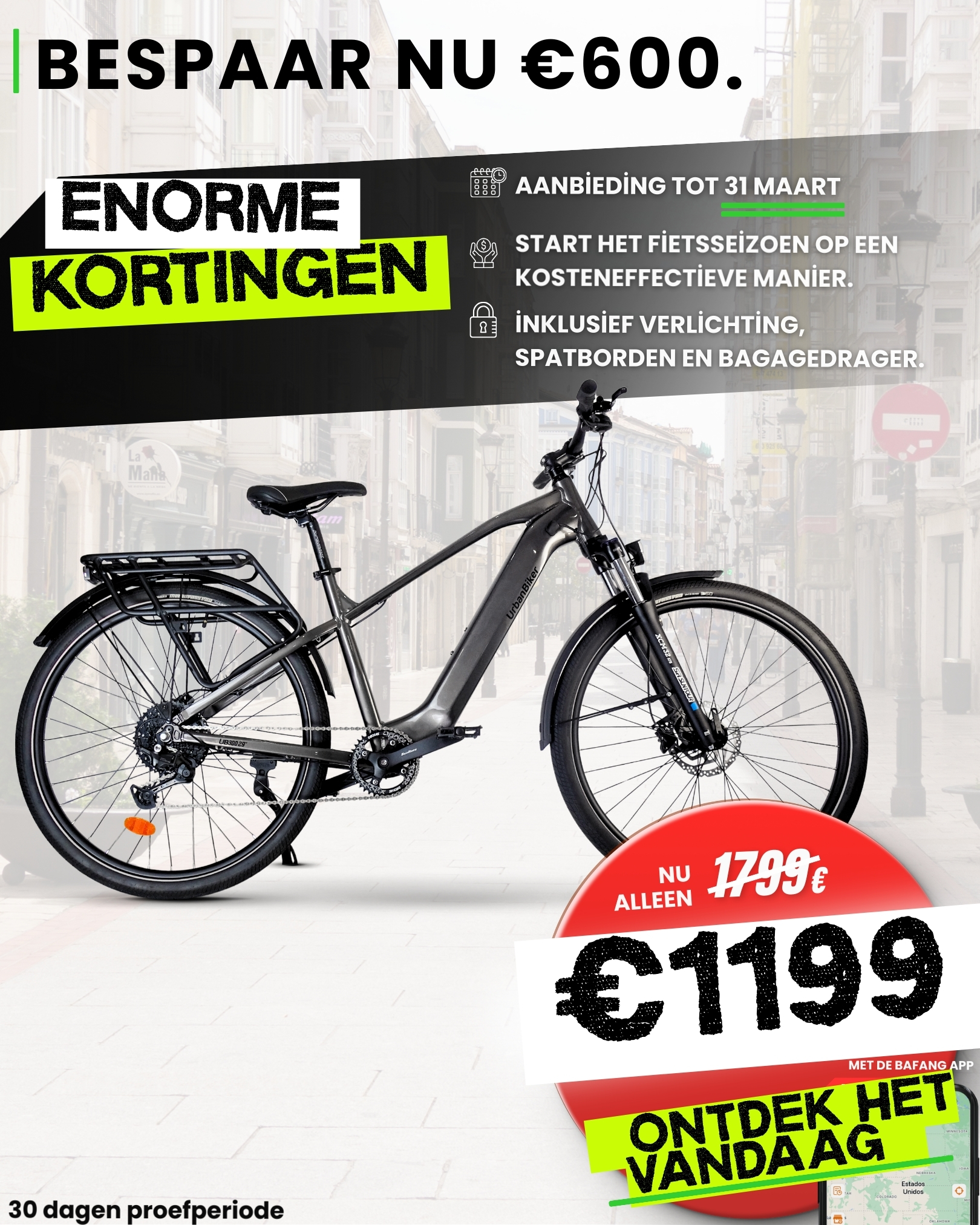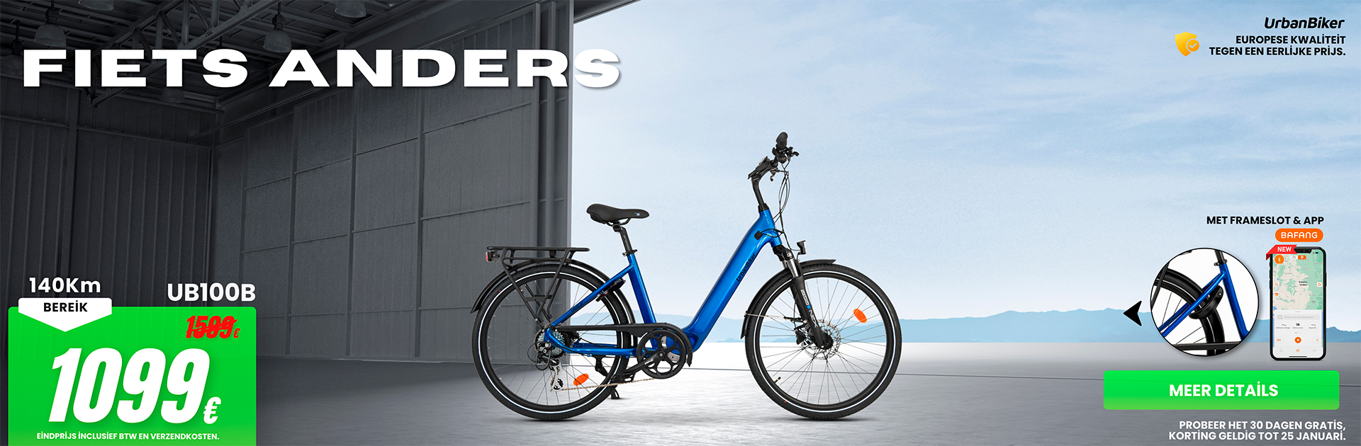 - U heeft 30 dagen de tijd om de fiets uit te proberen (met minder dan 10 km gebruik) en uw aankoop te evalueren.