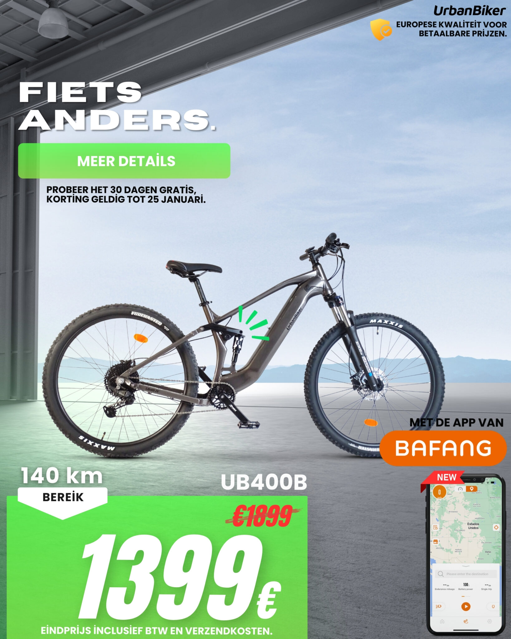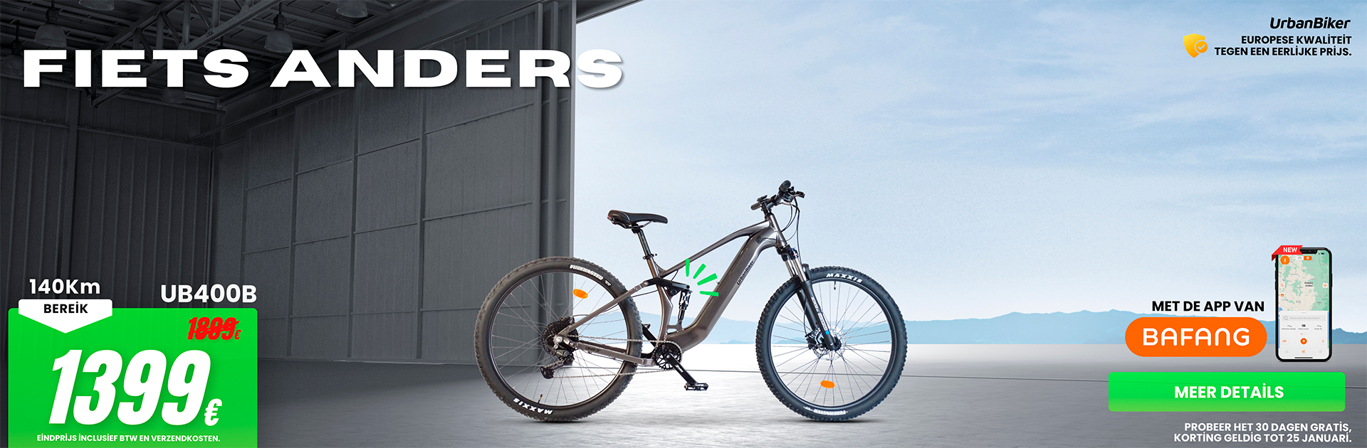 UrbanBiker UB400B | Mountain E-Bike Volledige Suspesion | Actieradius tot 140 km