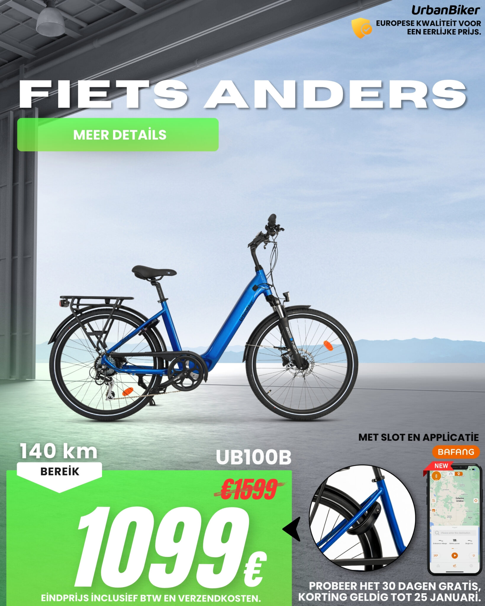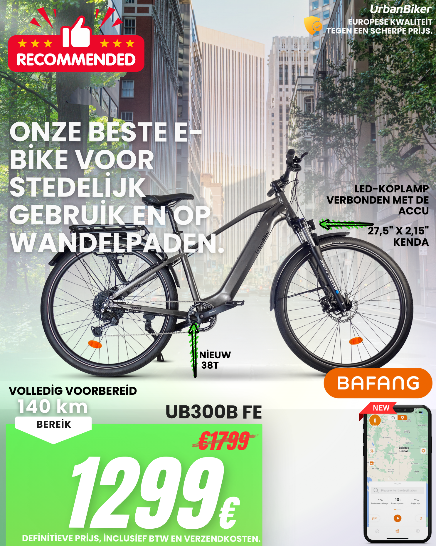 UrbanBiker UB100B | Urban E-Bike | Actieradius tot 140 km