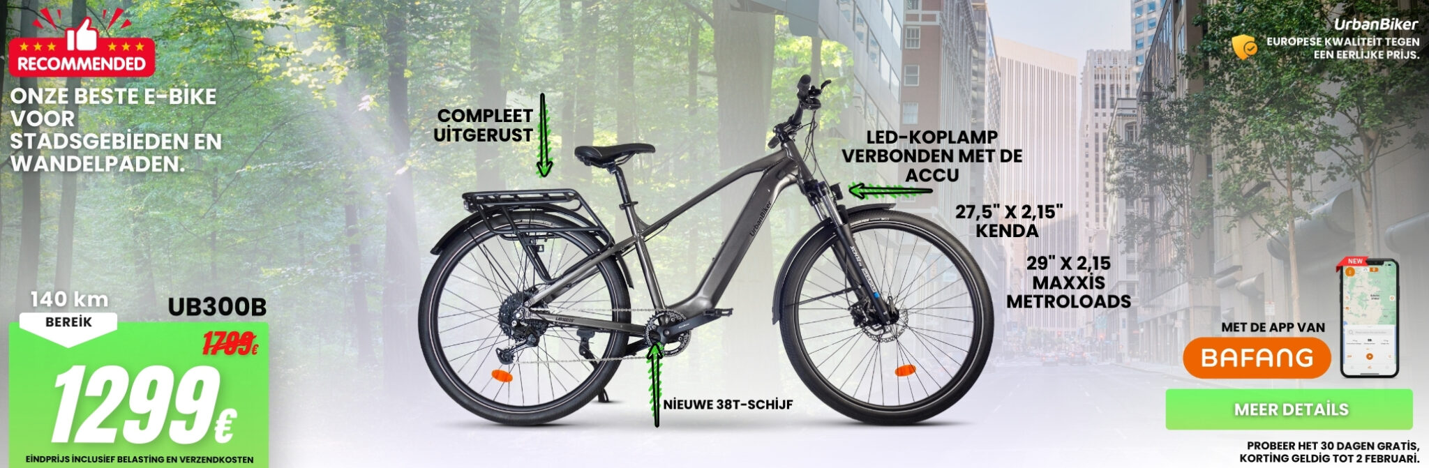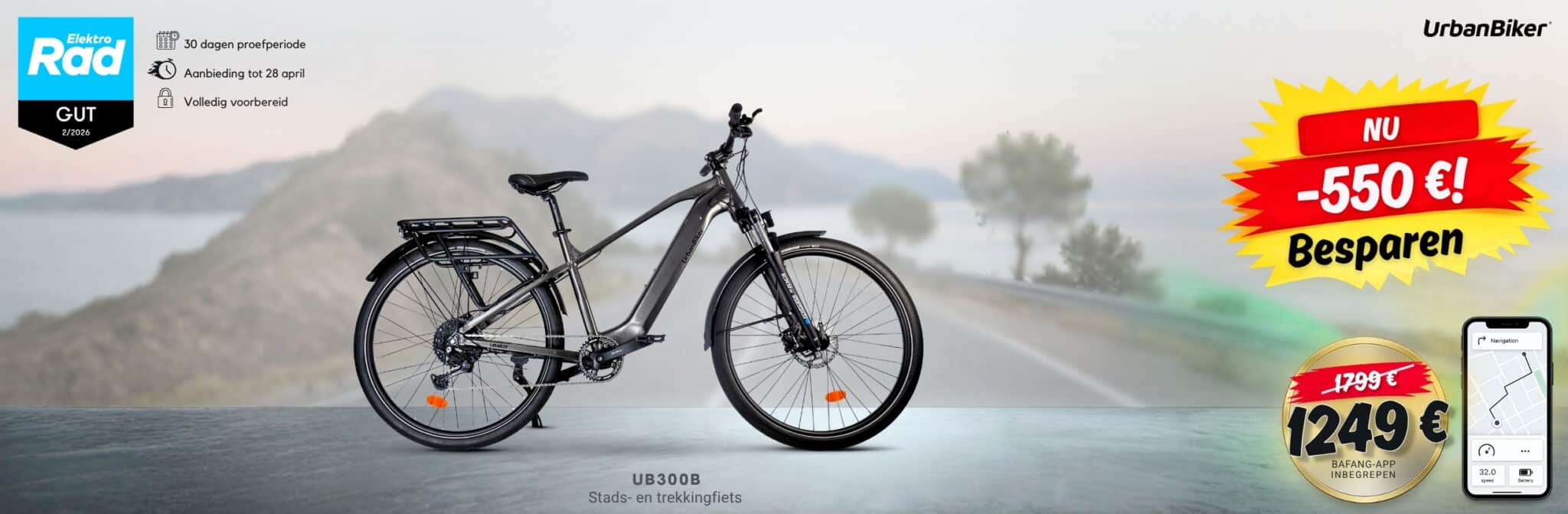 UrbanBiker UB300B FE | Trekking E-Bike Volledig uitgerust | Actieradius tot 140 km